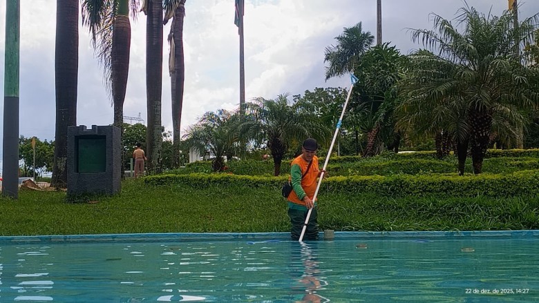 Intervenções buscam preservar os espaços públicos, assegurar o funcionamento adequado dos sistemas hidráulicos das fontes e das estruturas de drenagem, evitar problemas típicos do período chuvoso e reduzir riscos de transmissão de doenças como a dengue.