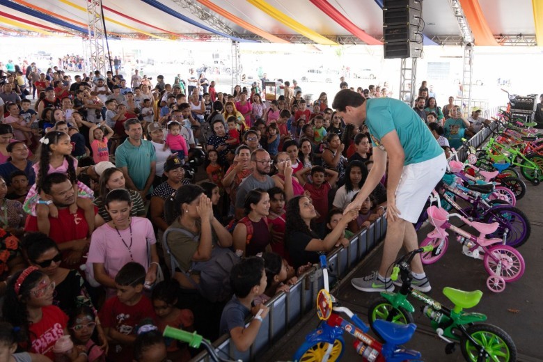 Evento idealizado pelo prefeito Leandro Vilela e pela primeira-dama Lana Bezerra teve show da Patrulha Canina, brinquedos infláveis, oficinas e o sorteio de 140 bicicletas para crianças de todas as idades