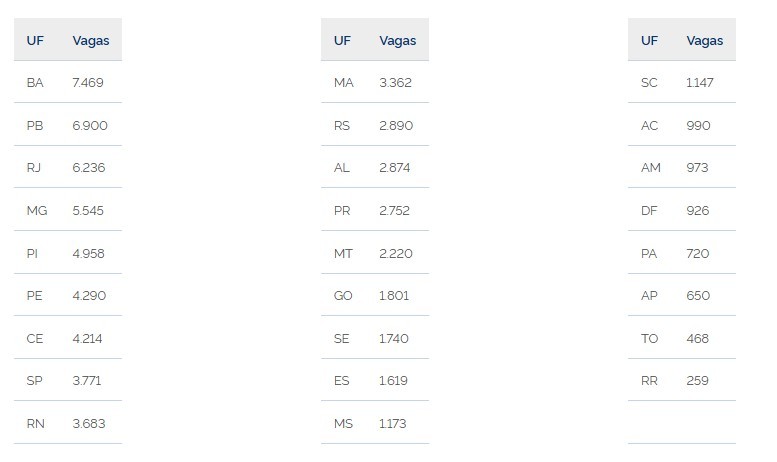 Confira as vagas de licenciaturas disponíveis no Sisu 2026, por unidade da Federação (UF):