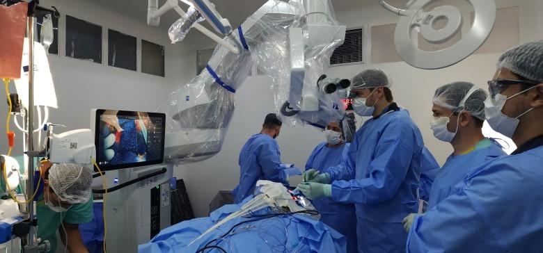 O primeiro procedimento durou cerca de oito horas e mobilizou uma equipe multiprofissional, incluindo três neurocirurgiões, dois anestesiologistas, instrumentadores e profissionais da enfermagem. A cirurgia contou com o suporte de um microscópio cirúrgico de última geração, recém-adquirido pelo hospital, fundamental para garantir precisão e segurança nas intervenções neurovasculares.