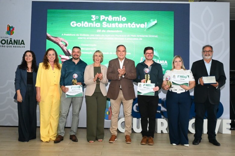 O prefeito Sandro Mabel entregou, nesta sexta-feira (5/12), o 3º Prêmio Goiânia Sustentável, que reconhece empresas desenvolvedoras de ações e projetos técnicos voltados à conservação, recuperação e promoção da qualidade ambiental na capital, estimulando o setor produtivo a adotar práticas de sustentabilidade e eficiência. Para participar, as instituições precisam possuir o Selo de Sustentabilidade de Goiânia, concedido pela Agência Municipal do Meio Ambiente (Amma), após validação dos projetos apresentados.