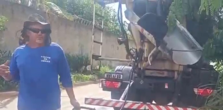 De acordo com os fiscais da SEMMA, o caminhão realizava o descarte de resíduos de concreto diretamente sobre o pavimento ao limpar o interior da caçamba, prática que infringe normas ambientais e compromete a conservação das vias públicas.