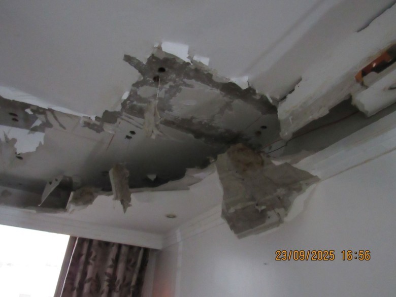 A decisão, embora difícil, foi tomada como medida preventiva para proteger os moradores. O imóvel apresentou infiltrações em praticamente todos os cômodos, além do desabamento da sanca da sala — sinais claros de que a estrutura estava sob risco. Técnicos da Defesa Civil identificaram ainda que o restante do teto também estava comprometido, o que aumentava a possibilidade de acidentes mais graves.